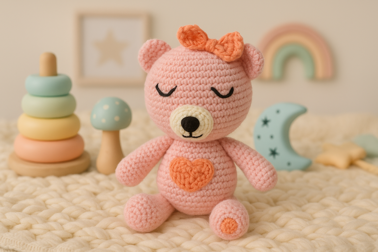 Handgemachte Bären-Rassel - Liebe auf den ersten Griff. Diese zauberhafte Bären-Rassel ist mehr als nur ein Spielzeug, sie ist ein kleiner Freund fürs Leben. Mit viel Liebe zum Detail aus weichem Garn gehäkelt, begleitet sie dein Baby bei den ersten Entdeckungen. Die integrierte Rassel sorgt für zarte Töne, die Babys Aufmerksamkeit wecken, ohne zu überreizen. Ein liebevoll handgefertigtes Unikat, das Babys Augen strahlen lässt und Elternherzen erwärmt.