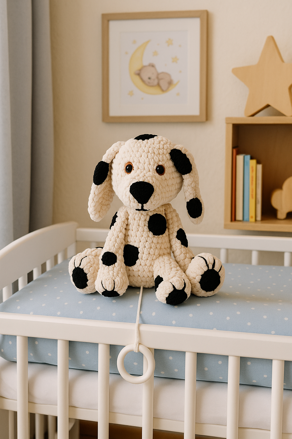 Mit seinem liebevollen Blick und den zarten Klängen wird Flecki Schnuffel schnell zum treuen Begleiter deines Babys. Jeder sanfte Ton "Schuberts Lullaby" erzählt von Geborgenheit und schenkt Ruhe, wenn kleine Augen langsam schwer werden. Der kuschelig gehäkelte Dalmatiner lädt zum Träumen, Liebhaben und Beschützfühlen ein - ein Freund, der die schönsten Momente der Kindheit begleitet.