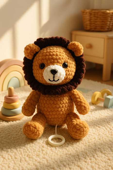 Sanft, verspielt und voller Wärme: Diese handgefertigte Löwen - Spieluhr "Schlaf Kindlein Schlaf" verzaubert jeden kleinen Engel. Mit seinem weich gehäkelten Körper, der wilden, flauschigen Mähne und seinem freundlichen Gesicht ist der Löwe nicht nur ein Kuschelfreund, sondern auch ein beruhigender Begleiter für die Schlafenszeit.