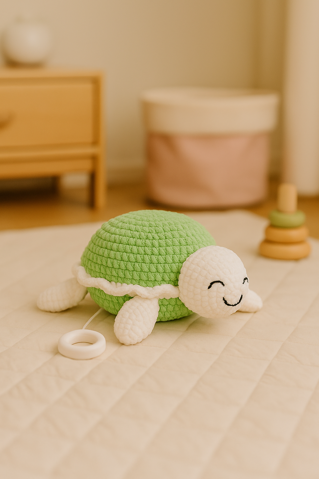Tilda – die kleine Traum-Schildkröte. Handgehäkelt mit viel Liebe – Tilda bringt Ruhe, Geborgenheit und ein Lächeln ins Kinderzimmer. Mit ihren zarten Pastellfarben und dem weichen Garn wird sie schnell zum treuen Einschlafbegleiter. Ein musikalischer Kuschelfreund für süße Träume.